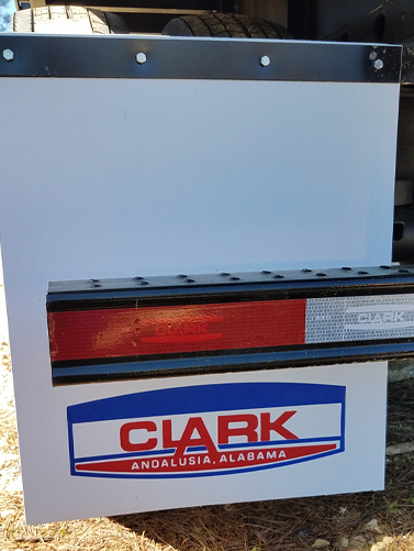 A lot of large fleets and trailer manufacturers express interest in getting their name on their mud flaps and it’s a great idea!. Custom logo mud flaps are essentially free advertising. But let the buyer beware….There are good options and bad options for logo branding mud flaps. The cheapest way is to just have your name screen printed on the flap. Although you can achieve a very detailed image by printing this way it’s usually not a good idea. Ink and flexible mud flaps do not get along well. The constant flexing of the actual flap leads to cracking, peeling, and fairly quick failure of the logo print on the surface. A better option to get your mud flaps hot stamped. This involves having a precision stamping plate made – like a branding iron – that is installed into a press and gets very hot. A sheet of colored ink paper is pulled across the mud flap, similar to wax paper, and the die plate is pressed into the ink film. This literally melts the ink into the surface of the mud flap which makes a much more durable logo stamp. Although the die plate isn’t cheap it’s a reliable method and this plate is saved for all future orders. A third option – and the best – is to have the logo literally molded into the surface of the flap. This creates a 3D raised logo image. Molded flaps do not come cheap. Making an entire mold with lettering and images can cost a couple of thousand dollars and is usually done for very high volume users. The actual cost of the flap isn’t much more than any other method, but it’s rather the expense of the initial mold. Beware of mud flap manufacturers that offer only one type of logo print. – it usually means they have a very limited production facility if options are not available.